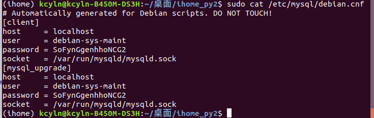 sudo cat /etc/mysql/debian.cnf # 使用client下的user和password登录